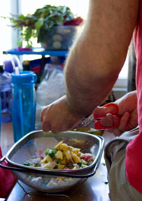 Week 11 felt streamlined, but in a way that came natural. On top of everything else, we arrived at a deeper level of understanding regarding our food waste. Around the second or third week of our 90 days of rawness Cameron purchased an indoor composter. It wasn’t really until this week until that we fully understood that we aren’t a typical family of four and all of our waste happens in one day, not seven. We had compost overload! This required that we take time to prep our compost (prep your compost, seriously… yeah I know). Although it isn’t as intricate a process as making raw vegan cheesecake, it requires a sharp pair of scissors and some time to cut food waste into small 2-inch parts. This gave us the ability to fill the composter to its brim without overloading it with big chunks of food waste. Later in the day, when the first load settled, we could add in the rest of our scraps.