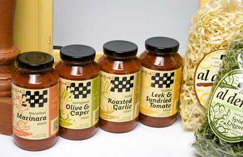 But, you ask, what good is pasta without sauce? Relax — it’s taken care of. Monique’s Sumptuous Sauces will satisfy those longings, whether you want a marinara or an olive & caper sauce. Online ordering is available, and Al Dente Pasta Company has some lovely gift assortments. I myself have given pasta as a gift, and it’s always well-received. Visit Al Dente’s website to order, find recipes, and have a look at all of their products.