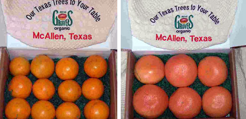 Well, but why bother, you ask? You can probably get organic red grapefruit and oranges in the local upscale grocery store; why do you need to order any? The short answer: supermarket fruit isn’t this good, period. I can guarantee it won’t be as fresh, and it probably won’t be in the flawless condition in which these fruits will arrive at your door. And talk about flavor! Texas navel oranges are noted for their sweetness, and the only way you’ll get supermarket grapefruit to taste this sweet is by putting sugar on it. I’m exceptionally sensitive to bitterness in foods, but the Rio Reds from G and S Groves don’t bother my persnickety little taste buds in the slightest.