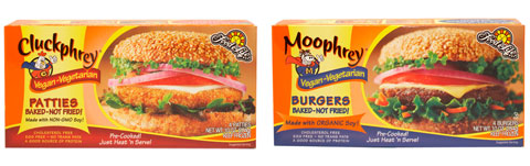 I have not tried anything approaching the entire product roster, but the Sprouted Whole Grain Bread is delicious toasted, and I’m a big fan of the Ezekiel 4:9 cereals. As with all of these products, the grains, beans, and lentils used for these cereals are all certified organic. All products are also made with filtered water and are kosher-certified. No conditioners, additives, artificial flavors, colors or preservatives are ever used. Food for Life cereals are bursting with whole grains (again, this carries over into their other products, as well), they’re hearty, and they really taste good. The cereal is available in Original, Golden Flax, Almond, and my favorite, Cinnamon Raisin. A bowl of this cereal with milk, heated briefly until it’s hot and topped with fresh or additional dried fruit, is a breakfast that will fill you up nicely, and you’ll know you’re doing something good for yourself at the same time. Those with special dietary needs will want to check out these products, too, as they’ll find examples of yeast-free, low glycemic/diabetic friendly, gluten free/wheat free, and high fiber specialties. The latest thing from these folks are their vegan “meats”, Cluckphrey and Moophrey (sorry, no prizes for figuring out those names!).