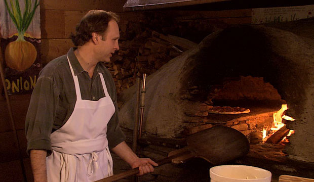 Inspired by his grandmother, who used a wood-fired stove to cook, George Schenk (pictured in top photo) built his first primitive wood fired oven, using field stone from his land. Guessing it wouldn’t be capable of baking a loaf of bread he made a flatbread. People liked the flatbread, and in 1987 a ten-ton oven was built on the outdoor patio at Tucker Hill Lodge, where Schenk & co baked under the stars. The following year, a new oven was built which incorporated ideas from the traditional clay ovens of rural Quebec, most notably the earthen dome signature to American Flatbread ovens today. By 1990, loyal flatbread fans lined up to enjoy their own meal of pure ingredients transformed by rock, clay, and fire. To accommodate American Flatbread’s increasing popularity, the current bakery at Lareau Farm in Waitsfield, VT was built. The first night of operation, 110 people showed up; soon after, the restaurant offered two nights of service.