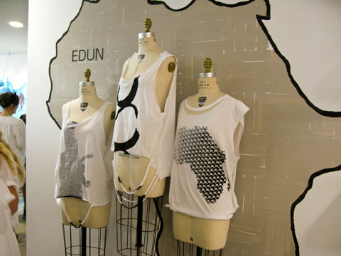 EDUN was founded on the premise of trade FOR aid as a means to create jobs and alleviate poverty. It’s a for-profit fashion company that aims to raise awareness of the possibilities in Africa, encourage the fashion community to do business there, and empower local workers who are able to earn a fair wage. The company is investing in the development of a community-based value chain in Uganda, beginning with organic cotton. It’s grown to be sewn to be shown.