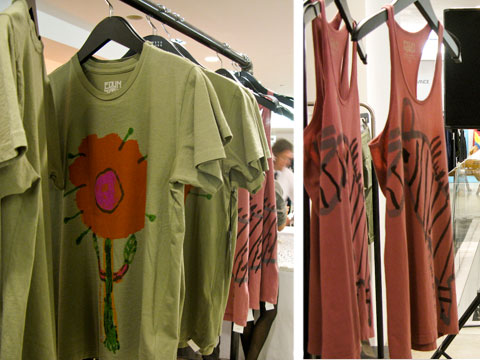 I attended the launch of the Pre-Fall collection and the Grow to Sew women’s collection at Barneys earlier tonight, where designers were on hand to customize T-shirts on the spot. Some turned out quite spectacular.