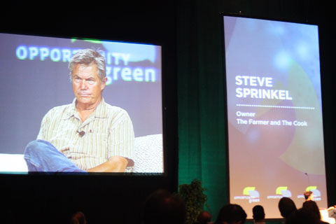 As Rick Ridgeway of Patagonia pointed out, there is no such thing as a sustainable business. All business has impact, and our goal should be to minimize it as much as possible. The company’s motto is “Build the best product, cause no unnecessary harm, use business to inspire and implement solutions to the environmental crisis.” Patagonia is a founding member of 1% for the Planet, a non-profit designed to help companies give back. Many of the other businesses represented at Opportunity Green are also members, all of whom give 1% of total sales (not profits — a very important distinction) toward environmental causes. Patagonia’s current environmental initiative is called Freedom to Roam, and is a coalition of business, government, and conservation groups working together to conserve wildlife corridors across North America. Ridgeway’s presentation emphasized the power of storytelling by telling us about M3, “the most badass wolverine ever” and said badass wolverine’s incredible migration route over the tallest mountain peaks in the roughest conditions. Allegedly, politicians became quite fond of M3. Many times, you have to appeal to people’s emotions to get stuff done.