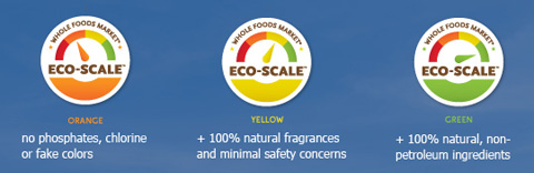Eco-Scale is color-coded rating system where household cleaning products will be rated red, orange, yellow or green based on a specific set of environmental and sourcing standards. The orange rating represents the minimum acceptable standards that the yellow and green standards build on, and the green rating represents the best choices. Whole Foods states that “the company is committed to working with vendors to evaluate and independently audit every product in its cleaning category. Each product will be required to meet—at the very minimum—the new baseline orange standard by Earth Day, 2012.” Red-rated products that don’t meet the Eco-Scale standards will not be sold at Whole Foods.