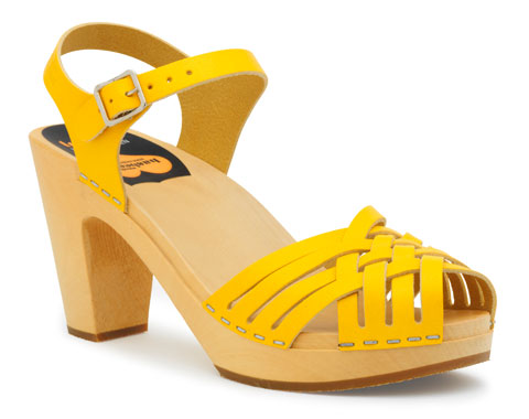 Maybe it’s because of nostalgia for the summers of my childhood, when the clogs came out as soon as the snow melted, but I am obsessed with Swedish Hasbeens. I’d wear anything they make. This summer I would love to run around town in these pretty yellow braided sky highs. (I’m a size 41, jus’ sayin.’)
