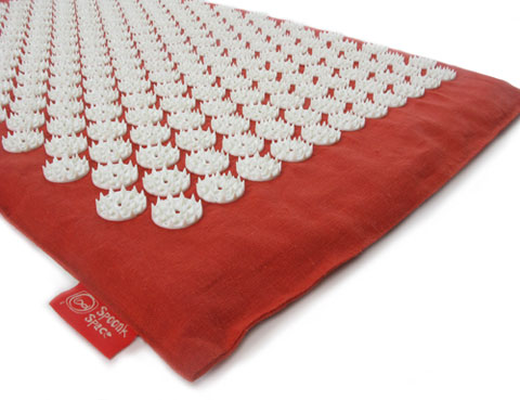 It may look scary, but the Spoonk mat is actually a great wellness tool! Made from all earth-friendly materials, it has 6,210 plastic spikes which stimulate nerve endings to increase blood circulation. Based on the ancient healing art of acupressure it helps relive muscle tension and pain, boosts energy levels, and provides a deep sense of calm and relaxation that helps us sleep better. These mats are very popular in Sweden and I’ve used one for years.