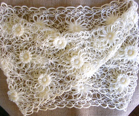 A timeless Turkish crochet pattern, this time made new in the Bazaar Bayar half-twist wrap. A three-dimensional daisy motifs adorn a honeycomb of mohair for light-weight warmth wrapped around your shoulders, twice around your neck, or even to create a stunning, face-framing hood.