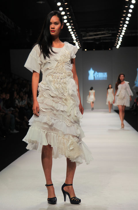 Designers were judged by a panel of renowned experts, including Orsola de Castro, co-founder of From Somewhere and Estethica; fashion designer Dorian Ho; Anderson Lee, Vice Chairman of the Sustainable Fashion Business Consortium; Helen Lee, Deputy Secretary General of Shanghai Fashion Designers’ Association; Margaret Kutt, Manager for Sustainable Projects at Esprit; fashion designer Vega Wang; and Xiao Xue, Editorial Director of ELLE China.