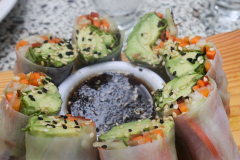 I opted for a plate of vegan summer rolls, which turned out to be everyone at the table’s favorite thing. There are also plenty of delicious juices, smoothies, teas and lemonades to cool you down. There is outdoor seating in the back or on the front porch. The portions are huge and suitable for sharing — after we couldn’t finish our meal, the server fed the leftovers to a homeless dog that the restaurant owners had decided to take care of.